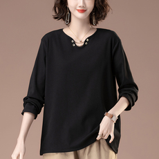 纯棉打底衫中年妈妈长袖t恤女春装新款秋衣上衣宽松大码内搭外穿