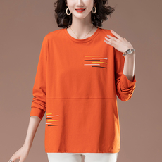 中年妈妈长袖t恤女春秋季新款加肥加大码女装宽松显瘦全棉打底衫