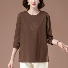 加肥加大码长袖t恤女春季新款中老年妈妈宽松洋气刺绣纯棉打底衫