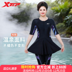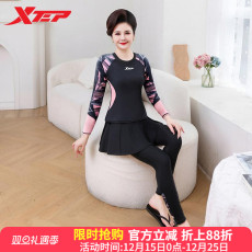 特步中老年泳衣女2025年新款长袖保守分体大码度假温泉妈妈潜水服