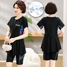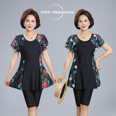 妈妈泳衣中老年保守大码遮肚显瘦夏天泳衣运动分体中裤泡温泉泳装