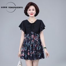 泡温泉中年妈妈泳衣女分体平角裤裙式保守加肥大码宽松中老年泳装