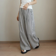 白色直筒裤女2023春夏新款爆大码松紧九分妈妈阔腿裤中老年条纹裤