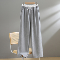 中老年妈妈冰丝阔腿裤外穿居家防蚊大码宽松女裤松紧腰直筒九分裤