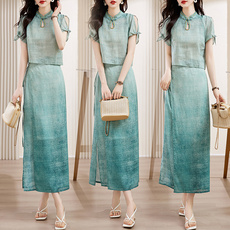 新中式国风改良旗袍套装女2023夏季新款气质名媛妈妈年轻款两件套