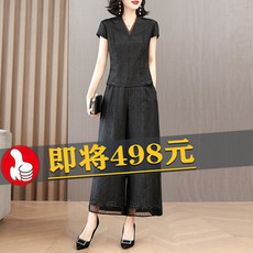 休闲新中式国风套装女夏季新款妈妈装气质显瘦减龄阔腿裤两件套裤