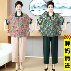 夏季新款大码妈妈装中老年宽松两件套套装上衣裤裙休闲夏装女装