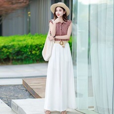 原创复古夏季妈妈时尚宽松遮肉上衣大码气质轻奢阔腿裤两件套装女