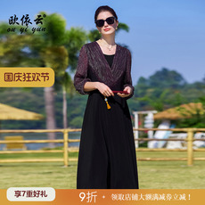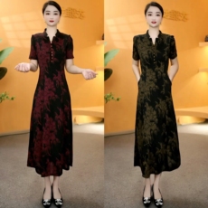 X044中年妈妈夏装连衣裙国风改良旗袍裙中老年女洋气假两件长裙子