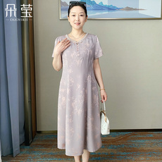 妈妈夏装国风改良旗袍连衣裙洋气中老年女装宽松显瘦裙新款雪纺裙