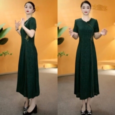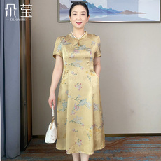年轻妈妈夏装改良旗袍连衣裙洋气新款中老年夏季新中式国风裙子女