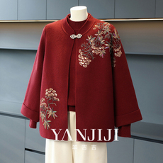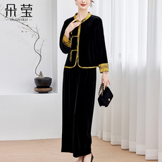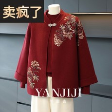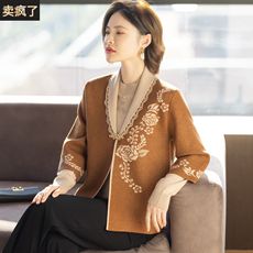 2025新款春秋高档大码上衣女妈妈秋装洋气两件套中老年人刺绣外套