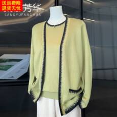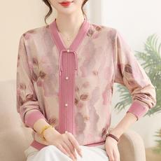 妈妈春装洋气桑蚕丝针织两件套外套中年女装新款中老年春秋开衫薄