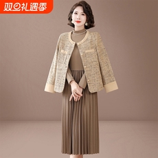 妈妈春装连衣裙套装中年小香风外套中老年女装春秋季贵夫人两件套