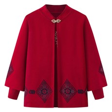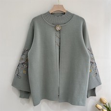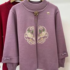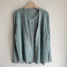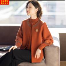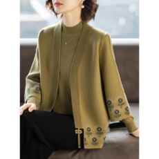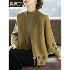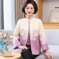 妈妈春装外套上衣国风两件套阔太太针织衫开衫秋装新中式针织外套