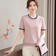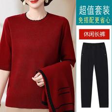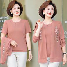 妈妈春装洋气针织外套中年女装夏季时尚短袖T恤中老年休闲两件套