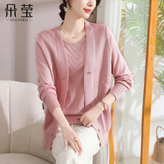 洋气妈妈秋装新款毛衣外套50岁中老年女装春秋季薄款打底衫两件套