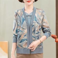 中年妈妈春装针织假两件套冰丝开衫洋气中老年女春秋季薄款外套
