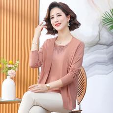 中年妈妈春装薄针织开衫外套T恤上衣中老年女春秋时尚毛衣两件套