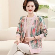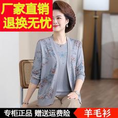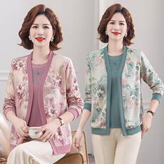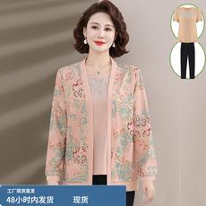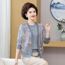 中年妈妈春秋新款上衣两件套女早春中老年针织开衫薄洋气外套装夏