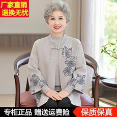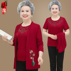 妈妈外套女中老年人春秋装两件套喜婆婆婚宴老人喜庆上衣针织套装