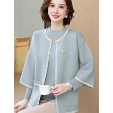 妈妈装春装外套针织开衫时尚洋气两件套毛衣中老年女秋冬气质上衣