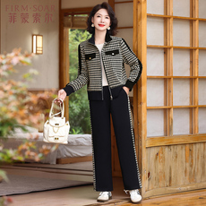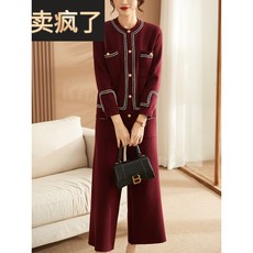 中年妈妈小香风秋冬套装中老年女装春秋针织开衫外套阔腿裤两件套