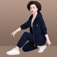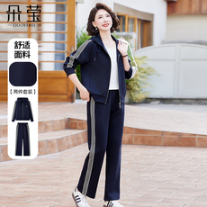 年轻妈妈运动套装新款上衣服裤子两件套中老年春秋风衣外套女休闲