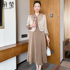妈妈春装洋气连衣裙套装阔太太高贵洋气两件套中老年女装短款外套