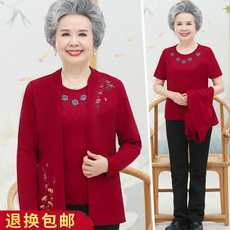 中老年人春秋女两件套装奶奶装夏装短袖T恤妈妈衣服老太太薄外套
