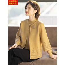 气质妈妈秋装洋气针织两件套春秋新款中年女装上衣中老年端庄外套