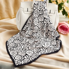真丝丝巾女小香风黑白山茶花100%桑蚕丝小方巾领巾OL职业装饰围巾