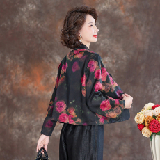 拼接中老年女装桑蚕丝开衫复古印花重磅真丝上衣圆领薄外套潮妈妈