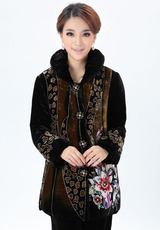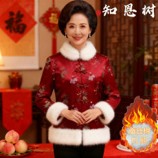 秋冬季真丝绒高档中老年大码女装唐装棉袄棉服冬装妈妈奶奶装上衣