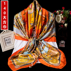 秋冬季新款真丝140CM超大方巾丝巾女妈妈装饰围巾披肩时尚百搭