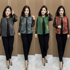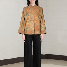 新款妈妈中式唐装锦缎棉袄中老年真丝国风女丝绸老人桑蚕丝女装