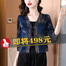 优雅气质短款上衣夏季新款复古盘扣中年妈妈装提花真丝缎开衫外套