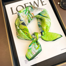 真丝桑蚕丝绿色油画小方巾丝巾女春秋妈妈护颈围脖子装饰薄围巾50