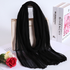 韩版休闲时尚褶皱真丝围巾女秋冬款超大丝巾妈妈装饰纱巾黑色披肩