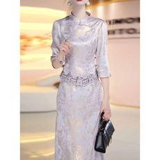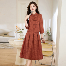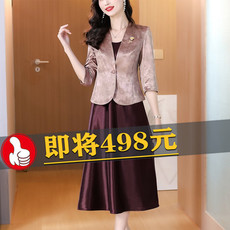 春秋婚礼妈妈礼服高贵喜婆婆婚宴装高端旗袍套装两件套中年连衣裙