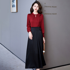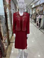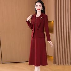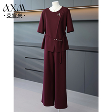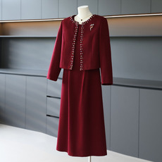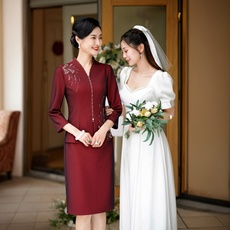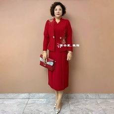 婚宴妈妈装礼服两件套平时可穿酒红色高端气质结婚喜婆婆礼服显瘦