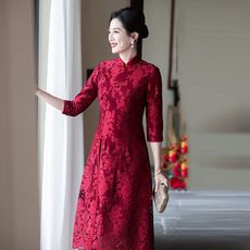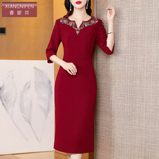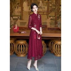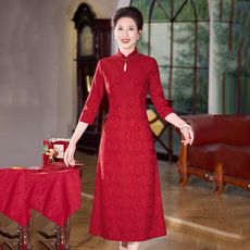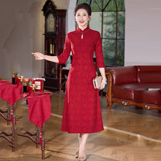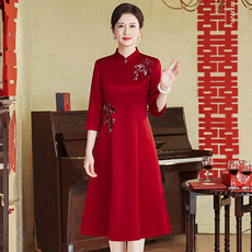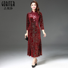 古贝莎秋冬装女改良旗袍结婚婚宴会小礼服婆婆妈妈装连衣裙子
