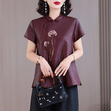 中年妈妈2025年夏季新款时尚休闲套装女仿真丝婚宴中式礼服两件套
