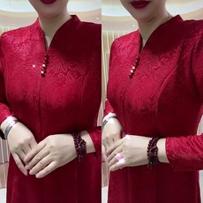 高端气质喜婆婆婚宴装礼服中老年红色旗袍连衣裙春秋高贵洋气妈妈