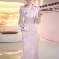 出席重要场合的穿搭高贵年轻喜婆婆婚宴装春季套装裙结婚妈妈礼服