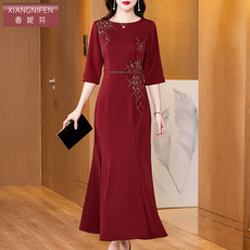 婚礼妈妈装旗袍连衣裙春秋新款中老年女装高贵礼服喜婆婆婚宴裙子