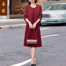 喜慕喜婆婆婚宴礼服平时可穿新款中老年妈妈连衣裙秋装两件套高贵