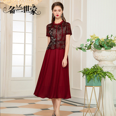 古贝莎夏季高端品牌参加婚宴婚礼妈妈装丈母娘连衣裙礼服裙女