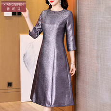 香妮芬优雅刺绣妈妈连衣裙2025秋季新款醋酸喜婆婆婚宴礼服旗袍装
