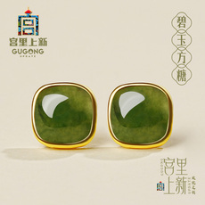宫里上新方糖耳钉女纯银高级感天然和田玉绿色耳饰送妈妈生日礼物